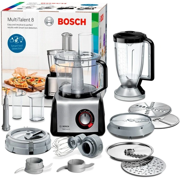 | Zubehör | vorhanden | Schneid-Wendescheibe (dick und dünn), Raspel-Wendescheibe (grob und fein), Reibscheibe grob, Asia-Gemüse-Scheibe, Pommes-Frites-Scheibe, Scheibenträger, Teigwerkzeug, Rührbesen, Deckel mit Einfüllhilfe und Stopfer | |