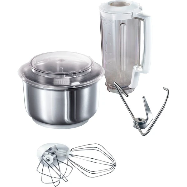 | Zubehör | vorhanden | Knethaken mit Teigteiler, Doppel-Schlagbesen, Mixer-Aufsatz Kunststoff, Rezeptheft, Deckel für Rühr- oder Mixerantrieb | |